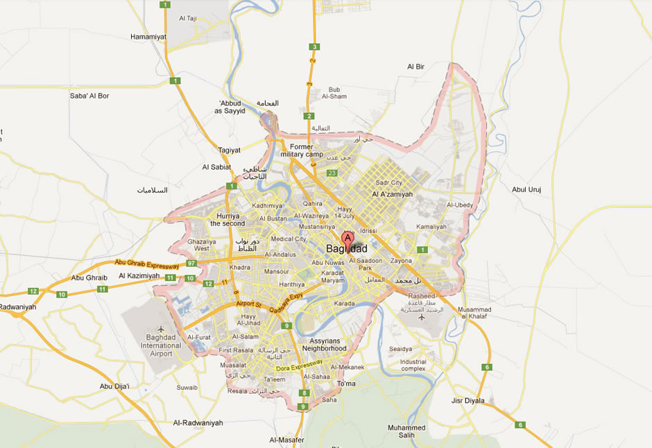 Naviguer Baghdad plan, Baghdad plan de ville, images satellite Baghdad, Baghdad plan des villes, carte politique Baghdad, itinéraires routiers et cartes de circulation.